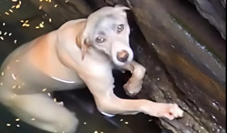 The dog, which moments earlier looked completely exhausted, suddenly seemed to find a final burst of strength. As if sensing that rescue was near, it began moving its paws again and tried to swim closer to the bank. It was a last desperate effort — the moment when the body is almost out of energy, but the instinct to survive takes over.