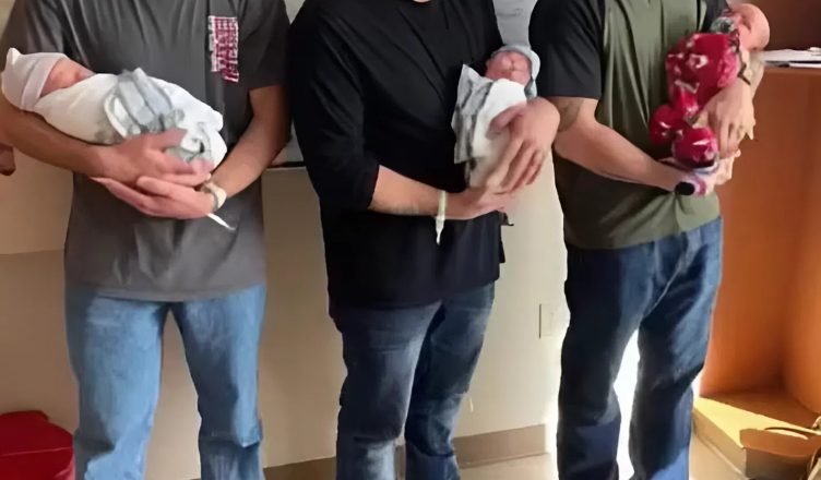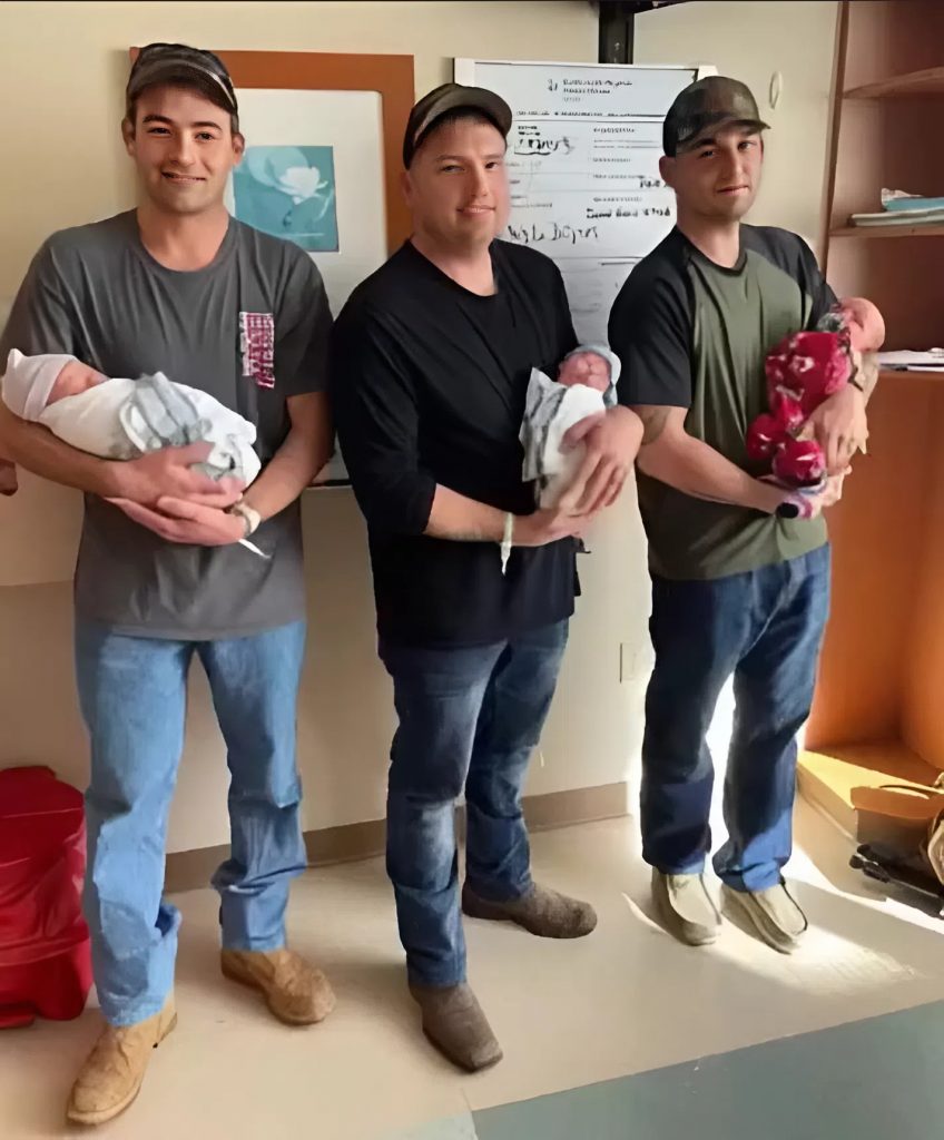 The nurses kept laughing, saying they had never seen anything like it before. At one point we even took a picture together in the hallway — the three of us standing side by side, each holding a newborn wrapped in blankets, still wearing our firefighting jackets.