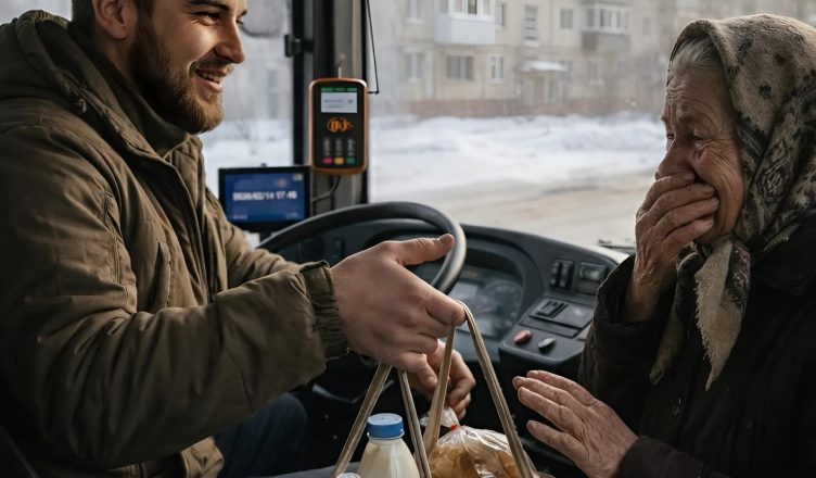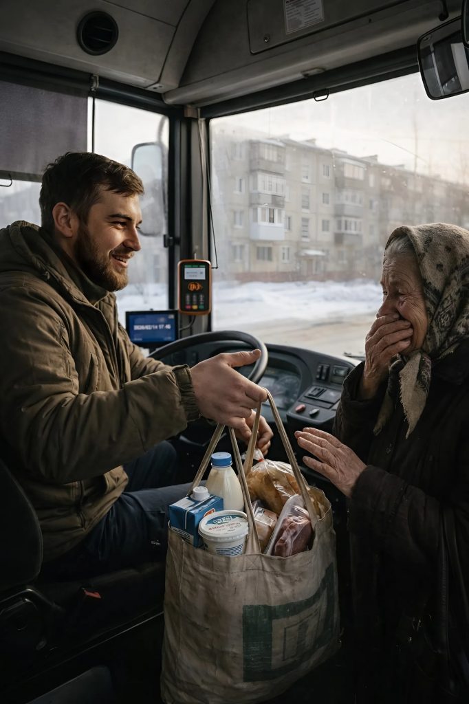 The driver sighed softly. He took out his wallet, pulled out a few bills, and gently placed them into her old bag.