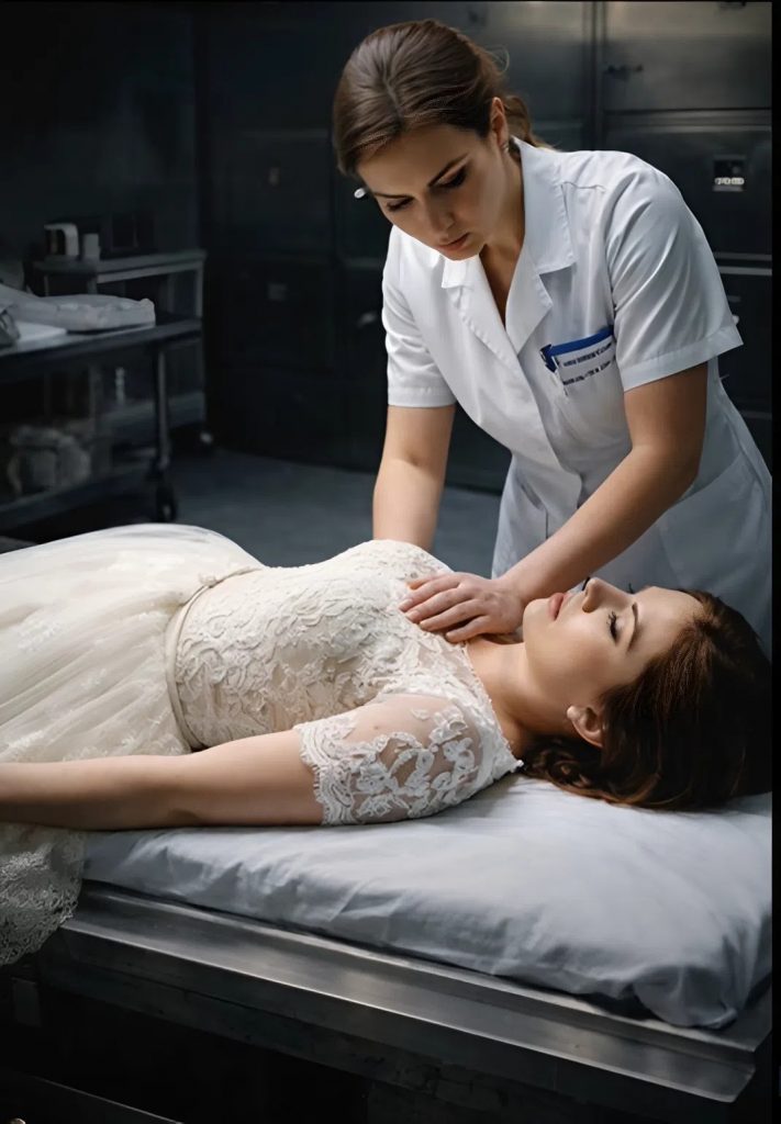 The attendant remained alone. She slowly walked closer to the table. The bride looked too peaceful. Her skin wasn’t gray, her lips weren’t blue, and her cheeks still had a soft pink color.