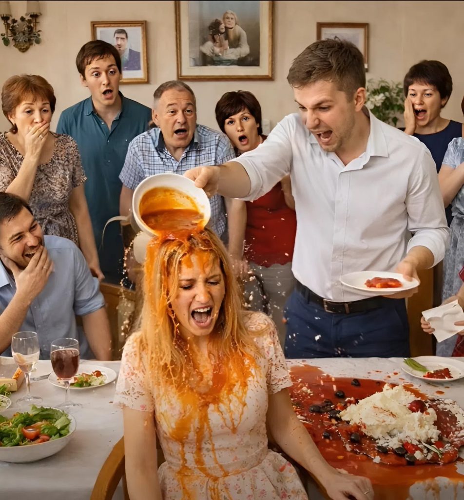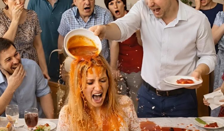 Hot soup dripped down her hair, over her face and neck, soaking into her dress… yet she didn’t jump up or panic. She simply lifted her eyes to her husband — and there were no tears, no hysteria in them. Only a cold, piercing calm that made even the boldest guests feel uneasy.