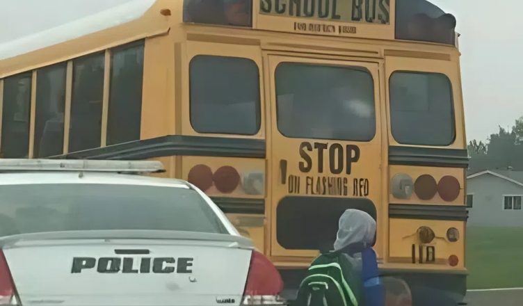 The little boy stood there, frozen in confusion and panic. His bus had already disappeared around the corner, and with it, his sense of safety. You could see it in his eyes — that silent fear children carry when the world suddenly feels too big, too fast, too unforgiving. He wasn’t crying yet, but he was close. The kind of close that breaks your heart if you notice it.