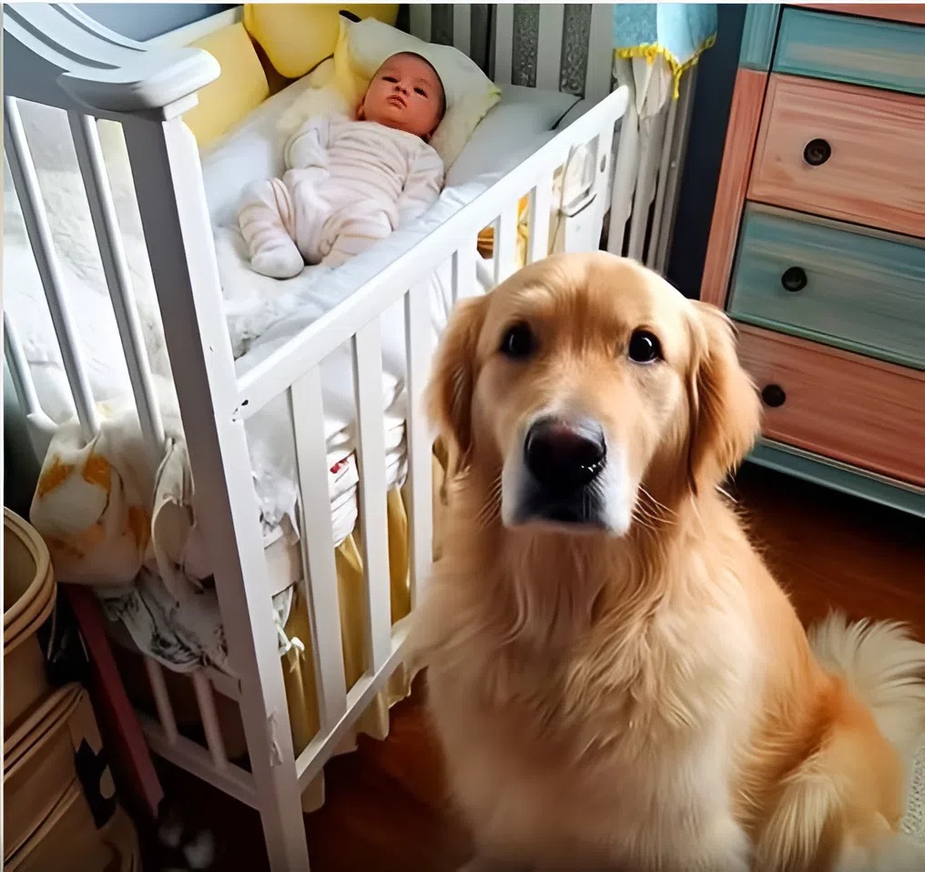 At first glance, it looked like his usual behavior — attentive, alert, always close to Rose or Zoey. But something was different. His posture was stiff. His eyes were locked, unblinking, fixed entirely on the baby. Not curious. Not protective. Something else. Something darker.