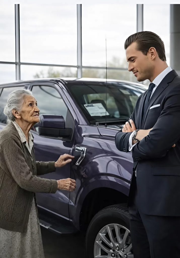 The salesman swallowed nervously and signaled to the front desk. Within minutes, the dealership owner entered the showroom—a confident man used to being in charge. His eyes scanned the room: tense employees, confused customers… and then stopped on the elderly woman.