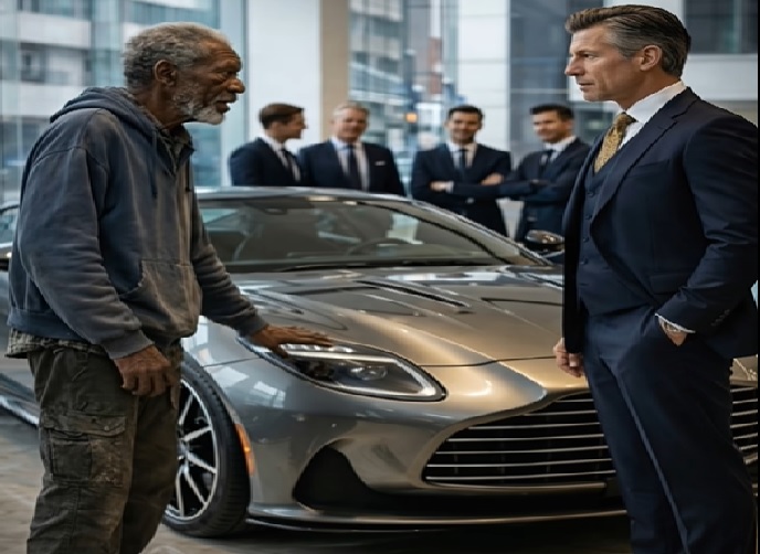 The enormous windows reflected the city lights, while inside—like a completely different world—stood flawless, gleaming cars. He didn’t move, he only stared, as if afraid that even the slightest motion might shatter the moment.