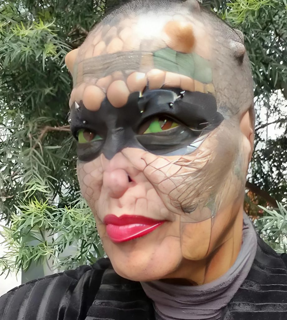 Nechala si celé tělo pokrýt tetováním napodobujícím šupiny hadů a ještěrů.