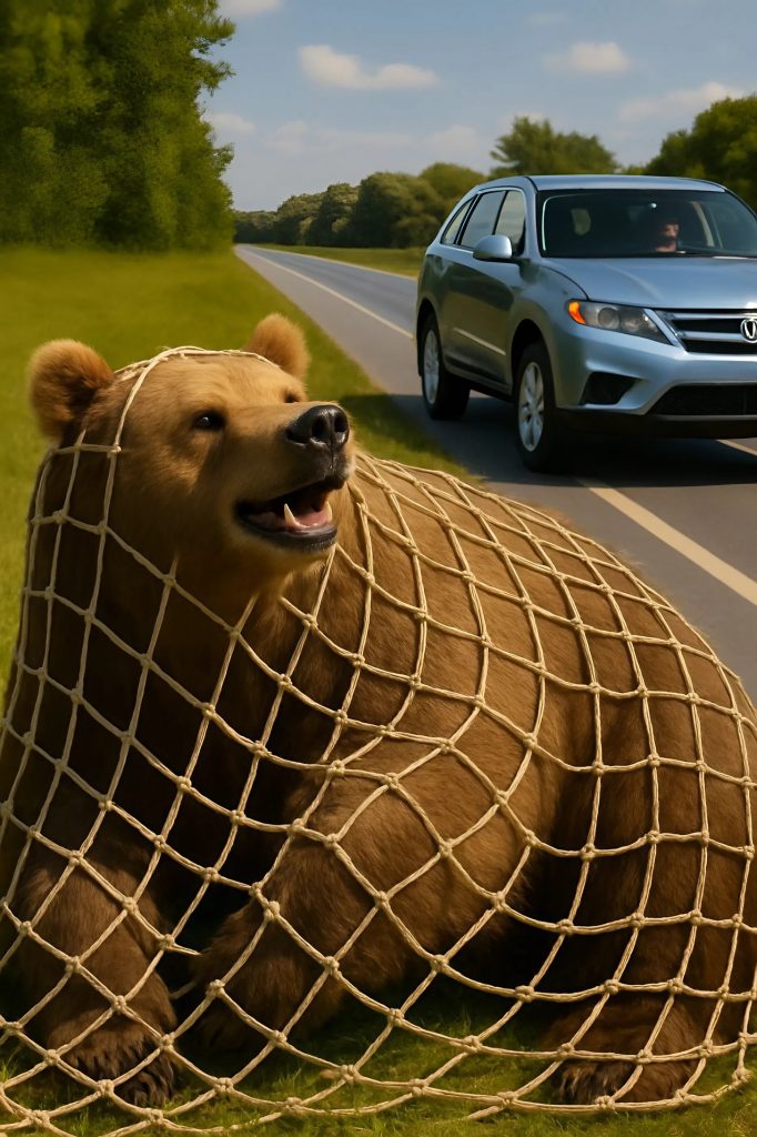 Tien reunassa makasi ruskea hahmo. Ensin luulin sitä kaatuneeksi rungoksi tai kasaksi oksia. Kun katsoin tarkemmin, veri jähmettyi suonissani: se oli karhu. Valtava eläin, mutta täysin avuton. Sen keho oli kietoutunut karkeaan verkkoon, köydet olivat pureutuneet turkkiin ja raajoihin. Hengitys oli raskasta ja katkonaisena, murahdukset kuulostivat enemmän pyynnöltä kuin uhalta.