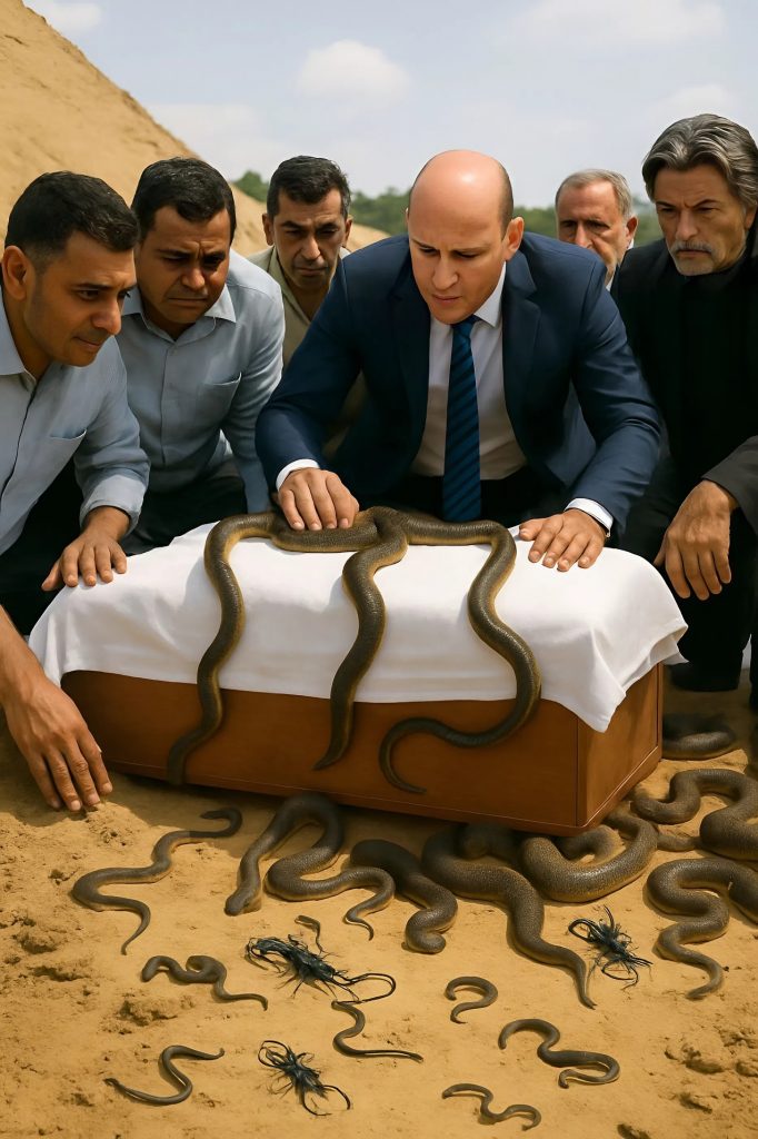 Kun pieni arkku laskettiin hitaasti maahan, kuopan pohja alkoi liikkua. Maa kohosi ja murtui, ja siitä alkoi ryömiä pitkiä, kiemurtelevia hahmoja. Ihmiset vetivät henkeä, kun ensimmäiset käärmeet nousivat näkyviin. Ne luikertelivat reunoille, sihisten ja nostaen päitään, ja jotkut niistä kiipesivät suoraan arkun päälle.