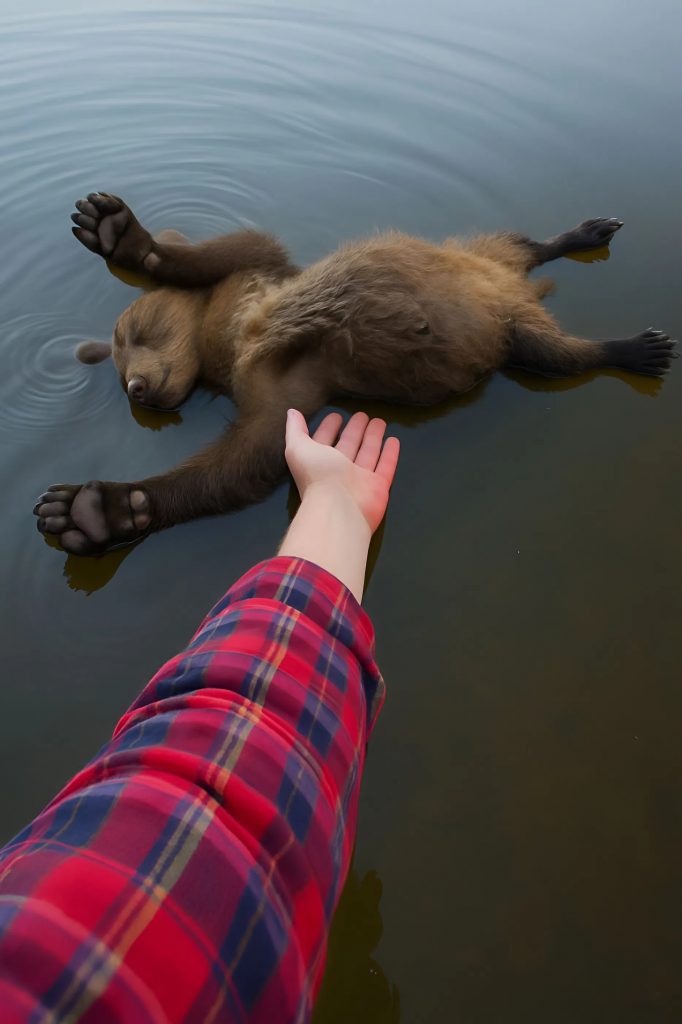 Šel jsem podél rozbouřené řeky, když mě najednou něco upoutalo — mezi vlnami se pomalu pohupovalo malé tělo medvíděte.