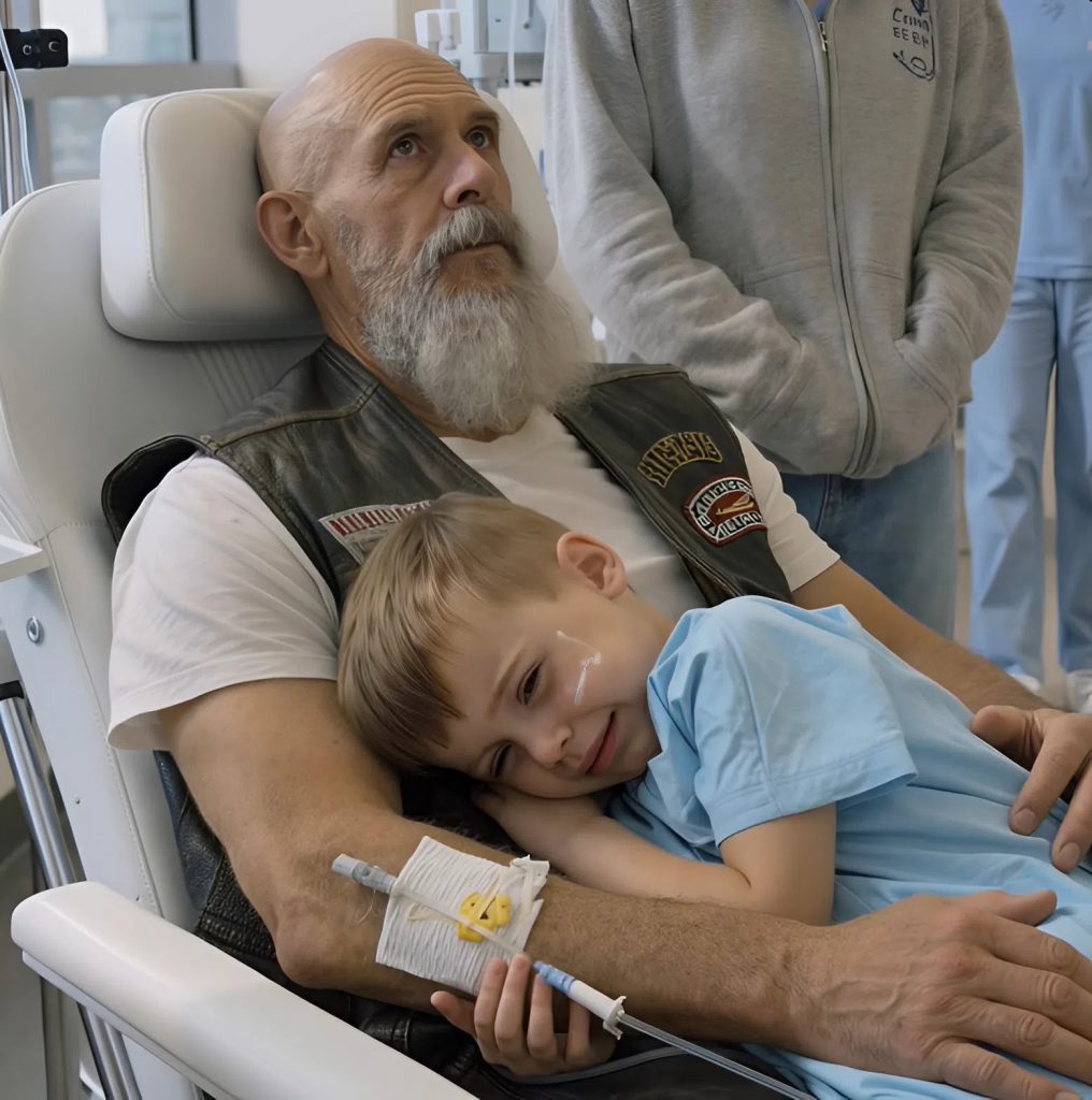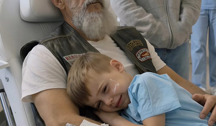 Dítě náhle ztichlo. Jeho oči, plné slz, se setkaly s Daleovým pohledem. Malá ruka se natáhla — a o chvíli později leželo dítě na motorkářově hrudi, přitulené k jeho srdci.