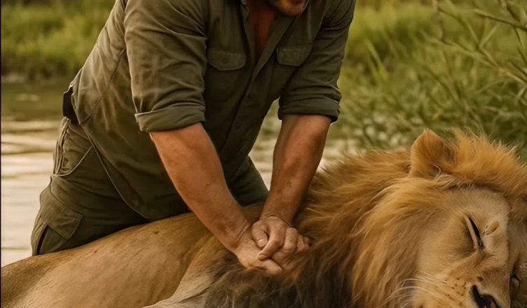 Лев медленно опустил голову. Его массивное тело дрогнуло, а затем он неожиданно лег на землю перед мужчиной. Огромная грива коснулась песка, и хищник… прижался лбом к ногам своего спасителя. Это было похоже не на агрессию, а на жест, в котором читалось признание и благодарность.