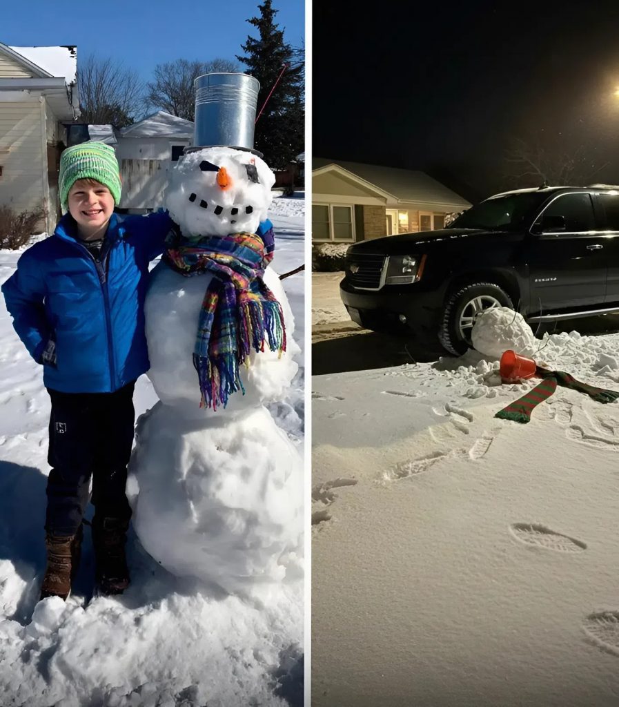 Каждый день после школы он, не теряя ни минуты, надевал тёплые штаны, варежки, шапку и выбегал во двор. Он тщательно катал снежные комья, ставил их друг на друга, вставлял веточки вместо рук, выкладывал камешками глаза и обязательно повязывал найденные в шкафу старые шарфы — «чтобы выглядели солидно», как он говорил.